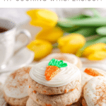 Once cooled, I spread or pipe cream cheese frosting onto each cookie. If I want to create a carrot design, I tint some frosting light green and some orange. I place the frosting in a piping bag or zip top bag with a tiny corner cut out. I pipe a bead frame around the cookie by piping dots around the outer edge, then pipe the carrot shape in the center. Sometimes I simply spread icing on top and dust with cinnamon, and they’re also delicious left plain.