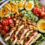 Chicken Cobb Salad is a vibrant, fresh dish packed with tender chicken, creamy avocado, tangy blue cheese, and a variety of crunchy vegetables. Topped with a zesty homemade dressing, this healthy and satisfying salad is perfect for lunch, dinner, or meal prep. Quick to make, customizable, and full of flavor, it’s a balanced meal that everyone will love.