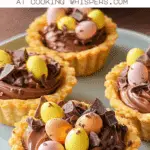 Mini chocolate eggs add a playful crunch, visual appeal, and an extra hit of sweetness to these sophisticated tarts. They make these desserts particularly festive for spring celebrations, though you could substitute other small chocolates or decorations based on the season.