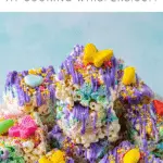 10 ounces mini marshmallows 4 tablespoons butter 6 cups popcorn 1 cup Easter egg candy ¼ cup sprinkles divided ½ cup Candy melts optional (pastel colors) Easter candies for decoration