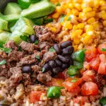 High Protein Beef Burrito Bowls with Flavorful Brown Rice