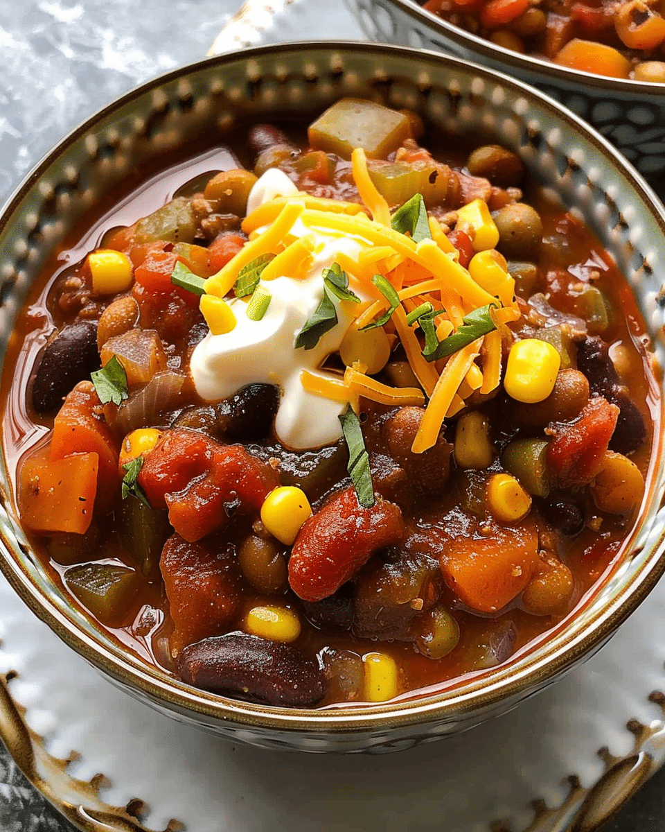 This Insanely Easy Vegetarian Chili is a satisfying, nutrient-packed dish that’s perfect for any occasion. With its simple preparation, versatility, and delicious flavors, it’s sure to become a go-to recipe in your meal rotation. Whether you’re serving it for a quick weeknight dinner or preparing it ahead for meal prep, this chili will delight both vegetarians and meat-lovers alike. Enjoy it on its own or customize with your favorite toppings for a warm, comforting meal.