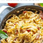 A rich, comforting one-pot creamy sun dried tomato pasta made in just 30 minutes with fettuccine, cream cheese, milk, and Parmesan for a silky, flavorful sauce.