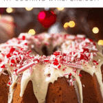 A festive, buttery peppermint pound cake swirled with red batter and topped with a rich cream cheese peppermint bark frosting—perfect for holiday celebrations.