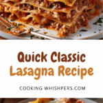 This Quick Classic Lasagna is a comforting, crowd-pleasing dish layered with tender noodles, rich meat sauce, creamy ricotta, and gooey melted cheese. It’s hearty, flavorful, and easy enough for a weeknight meal but special enough for gatherings.