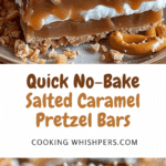 These Quick No-Bake Salted Caramel Pretzel Bars are one of my go-to desserts when I want something fast, easy, and absolutely delicious. I love the contrast of creamy caramel, fluffy topping, and salty pretzel crunch — it’s pure bliss in every bite. Whether I’m hosting guests, making a treat for my family, or just indulging in a little self-care dessert, these bars always hit the spot. Simple, elegant, and totally addictive — this recipe is one I’ll make again and again.