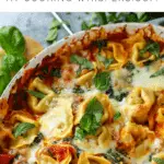 A quick and comforting Spinach and Ricotta Baked Tortellini Lasagne that tastes like homemade lasagne but takes only 10 minutes to prepare. With layers of cheesy tortellini, spinach, and rich tomato sauce, it’s the perfect effortless weeknight meal.