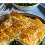 I store leftovers in the refrigerator for up to 5 days. To reheat, I warm the pie in the oven so the filo crisps back up. I avoid microwaving because it softens the pastry. I don’t freeze this dish since filo loses its texture once thawed.