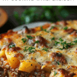 A hearty, comforting casserole that combines savory meatloaf with creamy mashed potatoes, melted cheddar, and fresh green onions. This loaded potato meatloaf casserole is an all-in-one meal that’s rich, flavorful, and perfect for family dinners or meal prep.
