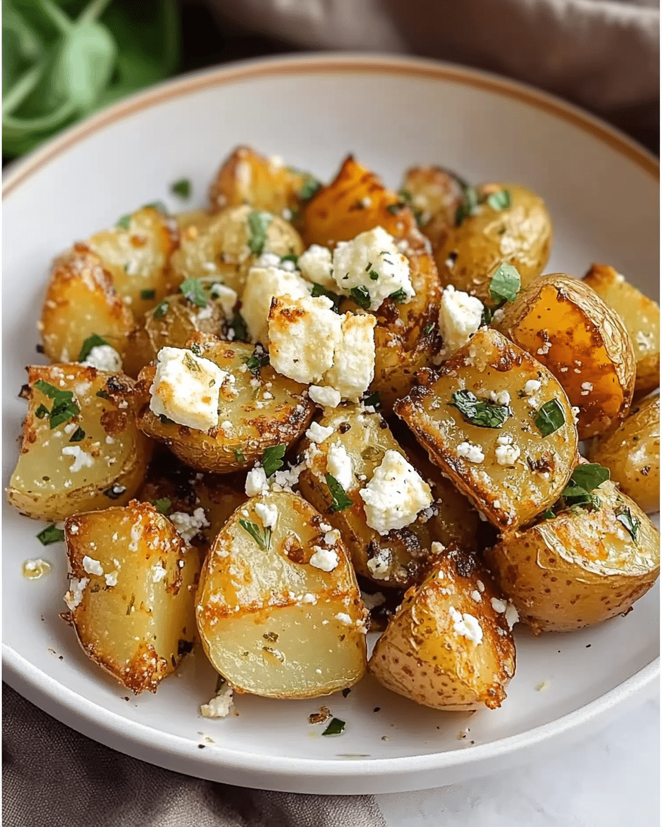A Mediterranean-inspired dish that combines crispy roasted potatoes with creamy baked feta, aromatic herbs, and sweet honey for a simple yet impressive meal.