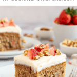 For the frosting, I cream the butter and cream cheese together until smooth. I gradually add the icing sugar and beat on low to medium speed until fully combined. Once the cake is completely cool, I spread the frosting evenly over the top. I finish by decorating with chopped nuts and fresh strawberries if I feel like adding a beautiful final touch.