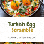 Turkish Egg Scramble is a hearty, colorful dish made with onions, peppers, tomatoes, and soft scrambled eggs. Seasoned with paprika and cumin, then garnished with parsley and optional feta, it’s a Mediterranean-inspired comfort meal that’s quick and versatile for any time of day.